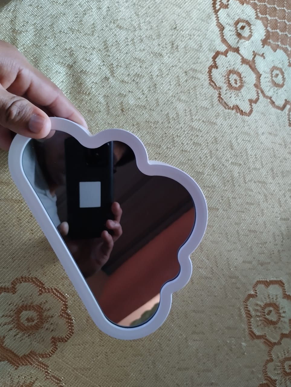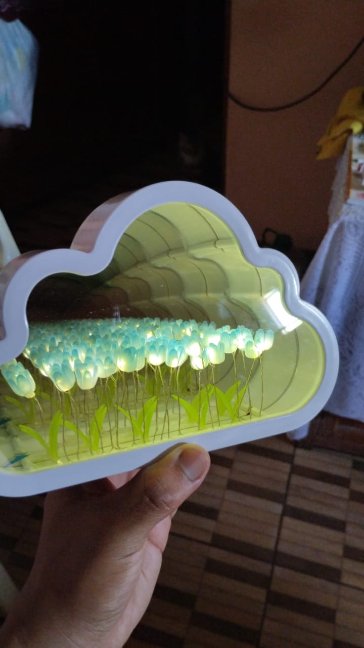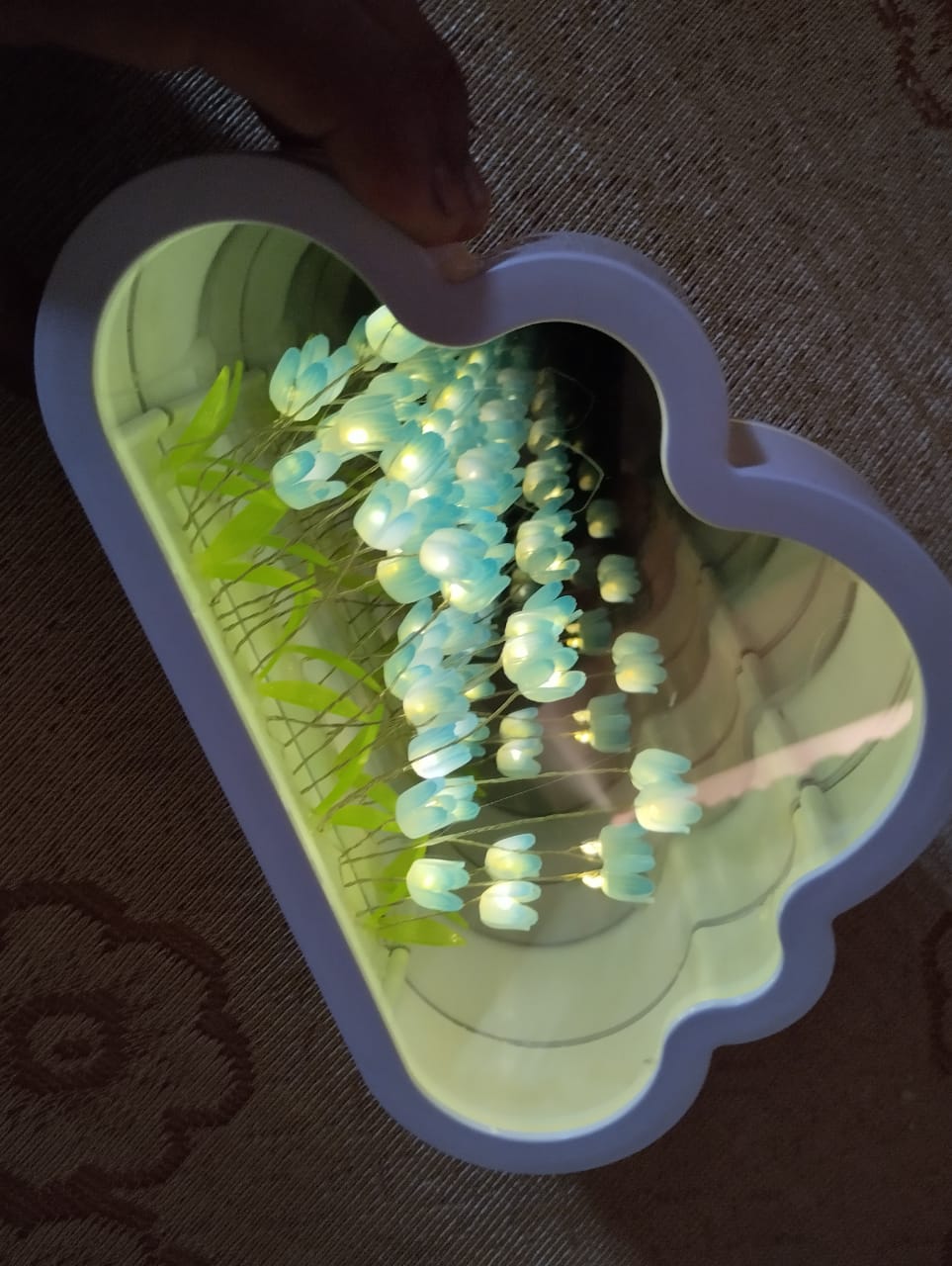 Elegante lampara en forma de nube en color celeste, funciona a pilas y también como espejo